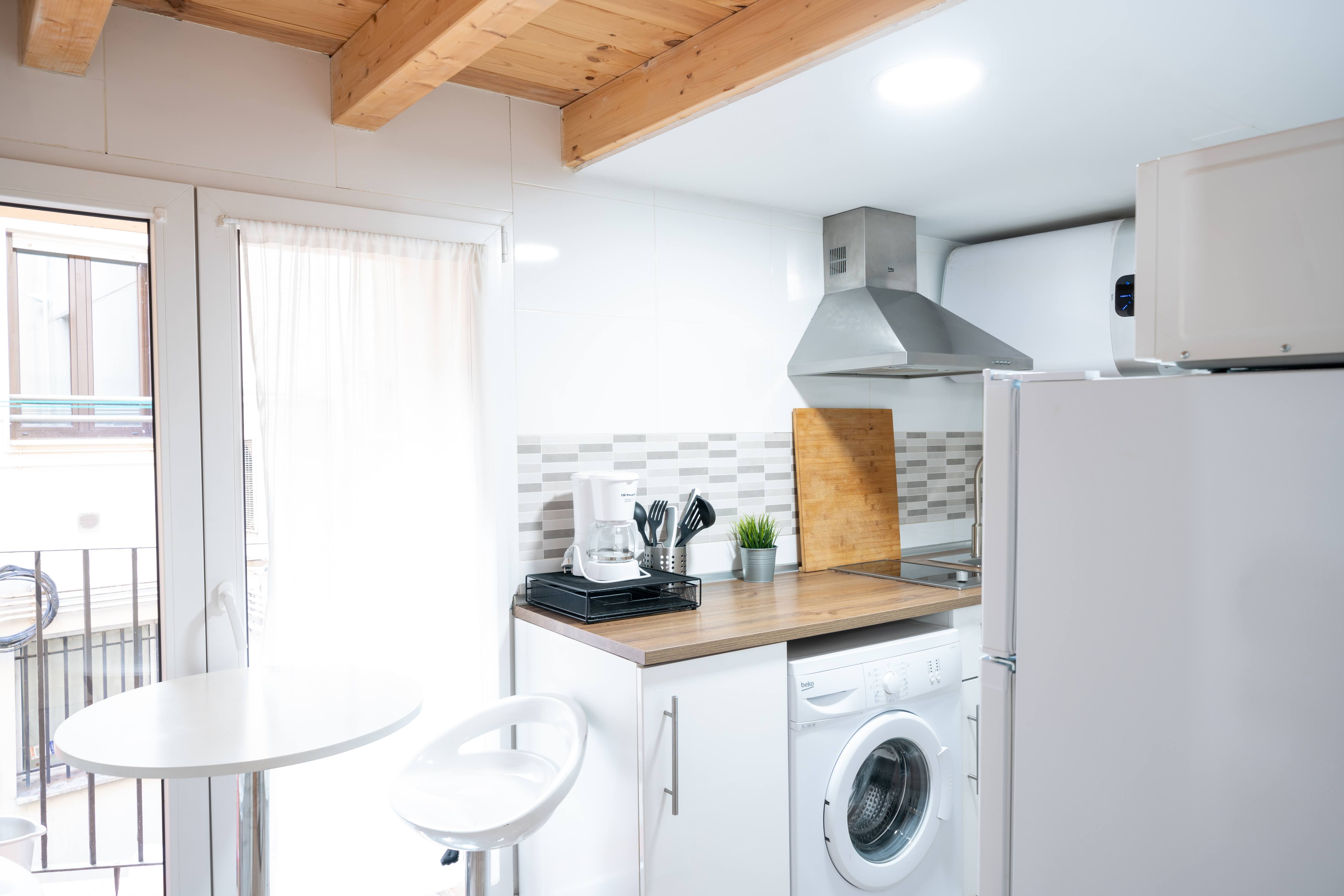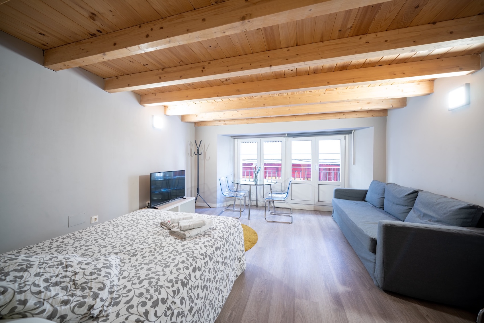 Cuenta con 1 dormitorio con una cama de matrimonio. Salón con sofá cama doble y TV, un baño con plato ducha, cocina equipada, aire acondicionado, Wi-Fi, ascensor, lavadora, plancha, cafetera, ropa de cama y toallas.