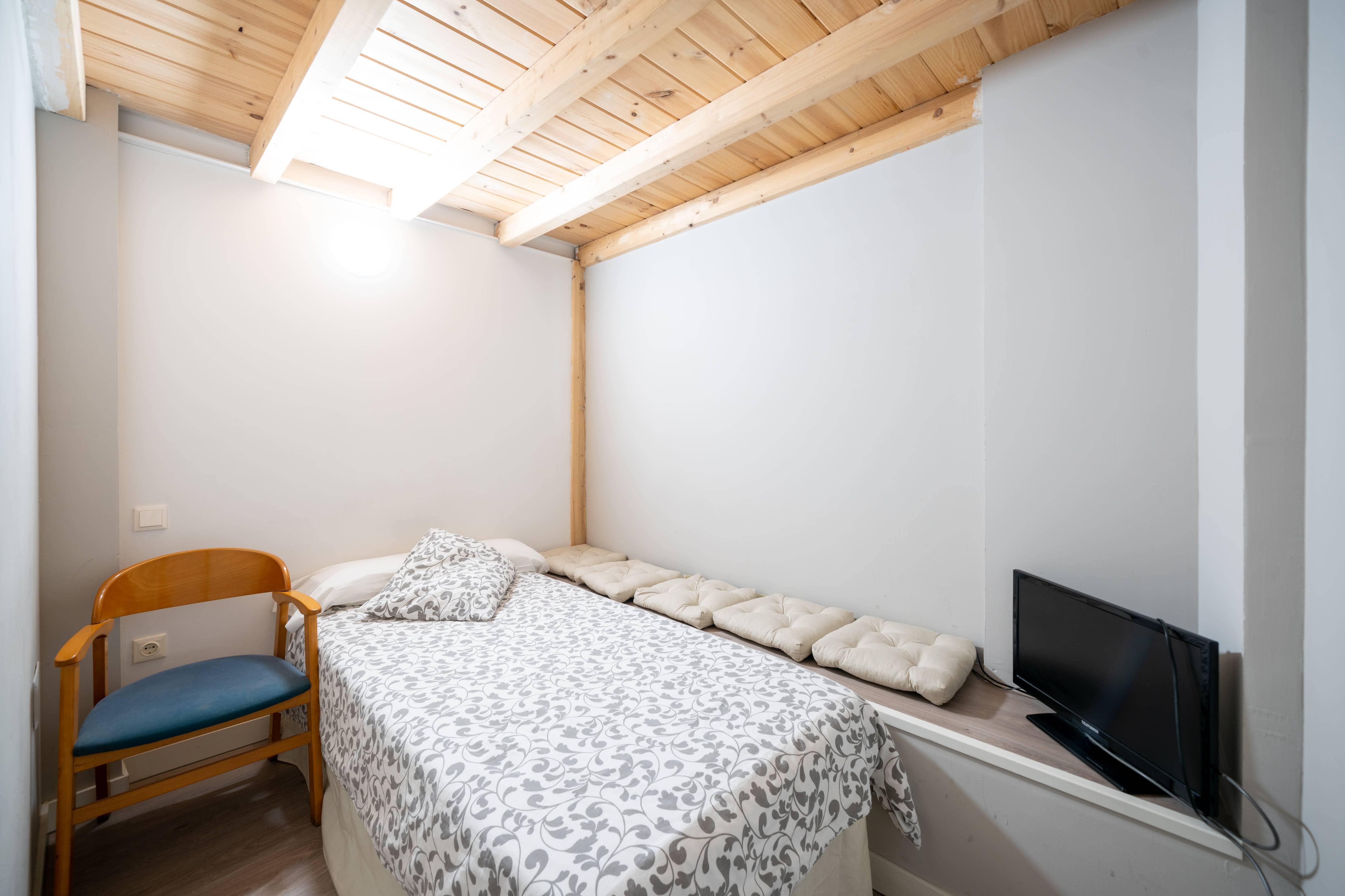 Cuenta con 1 dormitorio con una cama individual de 0,90 m . Salón con cama de matrimonio de 1,35 m y sofá cama con TV, un baño con plato ducha, cocina equipada, aire acondicionado, Wi-Fi, ascensor, lavadora, plancha, cafetera, ropa de cama y toallas.
