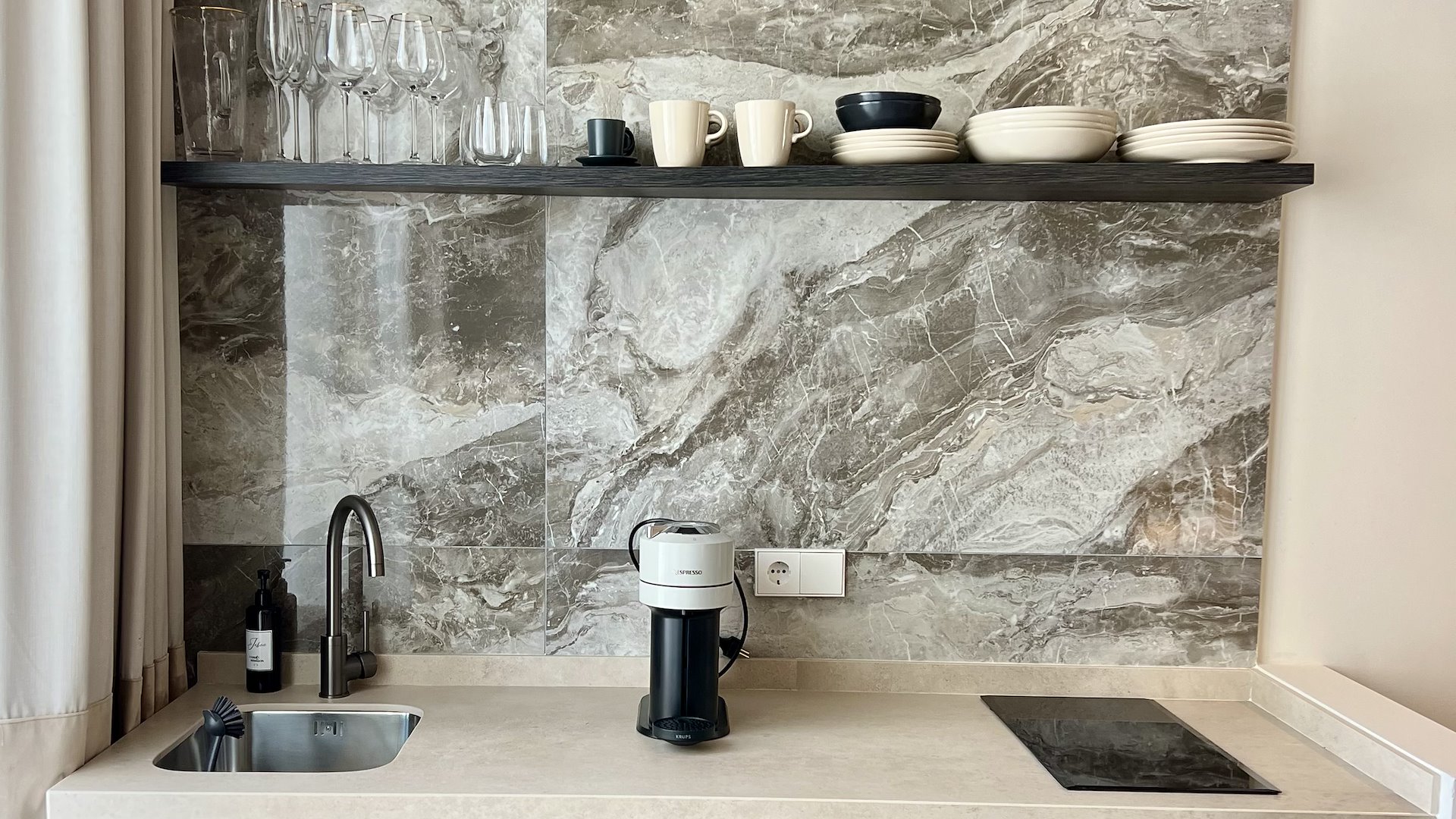 Very comfortable beds, high-quality bed linen, a TV, and a beautiful bathroom with shower and complimentary toiletries – during your stay at Comfy Studios you’ll have everything you need. The studios also include a fully equipped kitchen with refrigerator, cooking utensils, coffee maker, and kettle, so you can easily prepare a delicious breakfast, lunch, or dinner yourself during your holiday.