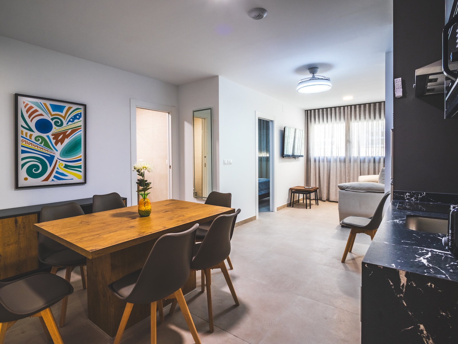 En Huelin Apartamentos ofrecemos apartamentos modernos, WiFi potente, cocina completa, piscina en azotea y zona coworking en el edificio